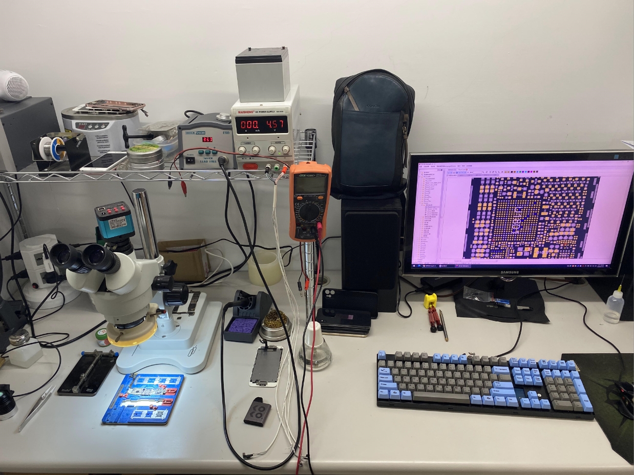 顯微鏡、熱風槍、電源供應器、無鉛焊台。